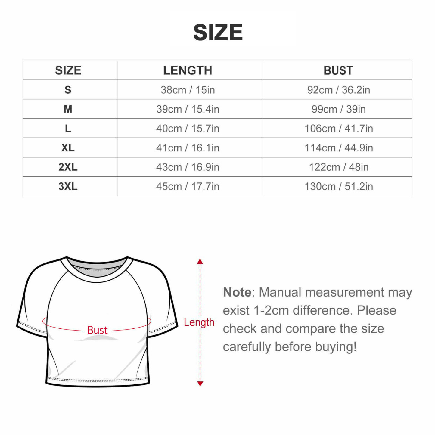 Size | Length(cm/in) | Bust(cm/in) |